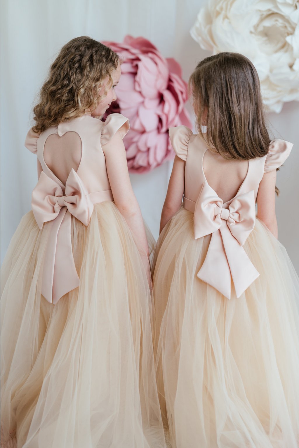 Srdce na zádech, odnímatelná ikonická mašle s prodlouženou stuhou.